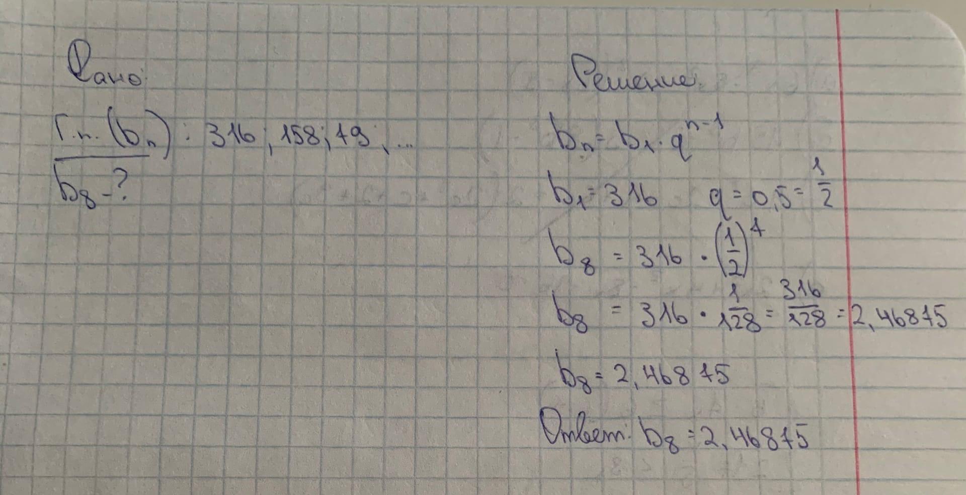 Дана геометрическая прогрессия (Bn) : 316; 158; 79; ... Найдите b8