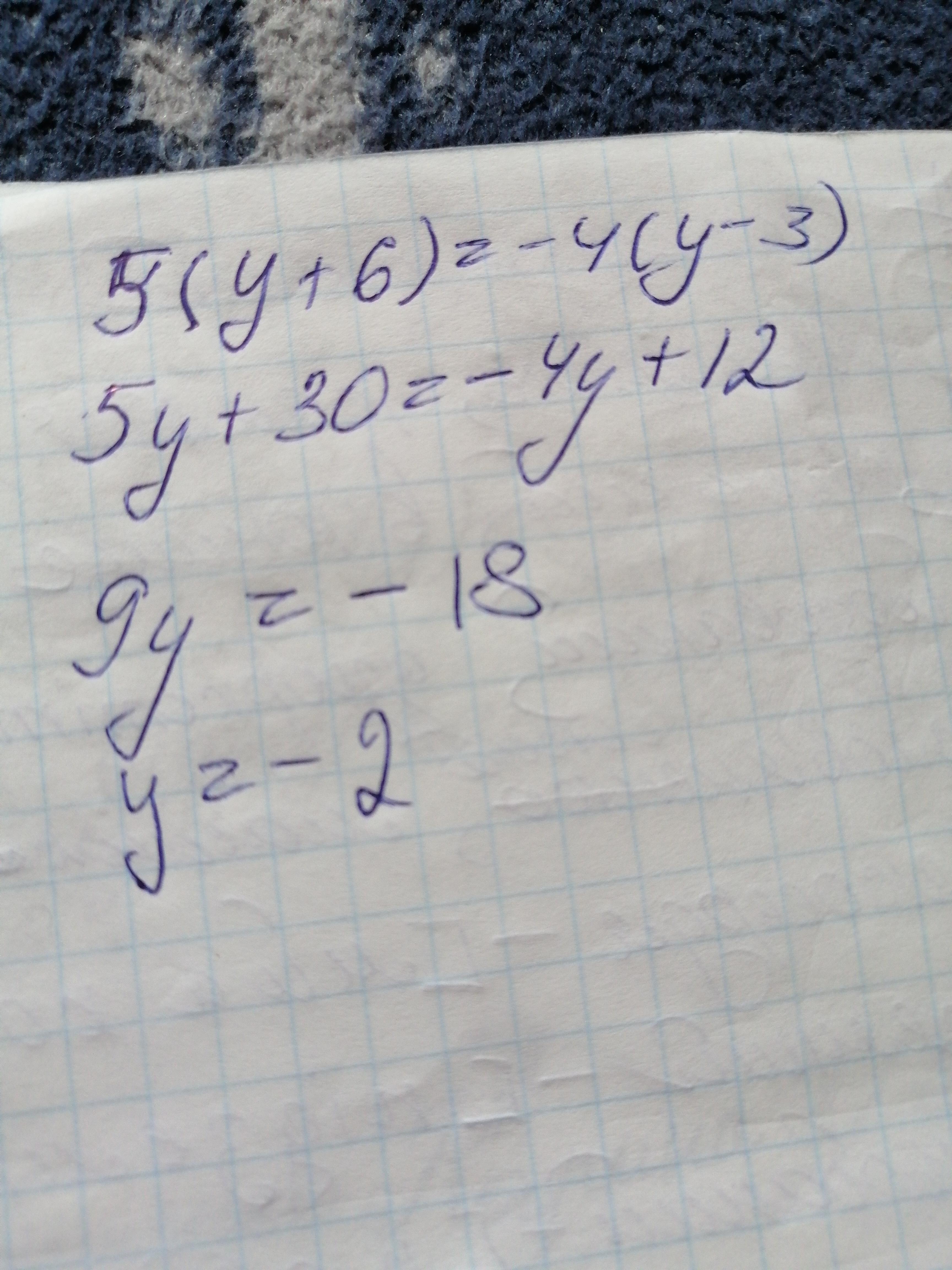 5(y+6)=-4(y-3)