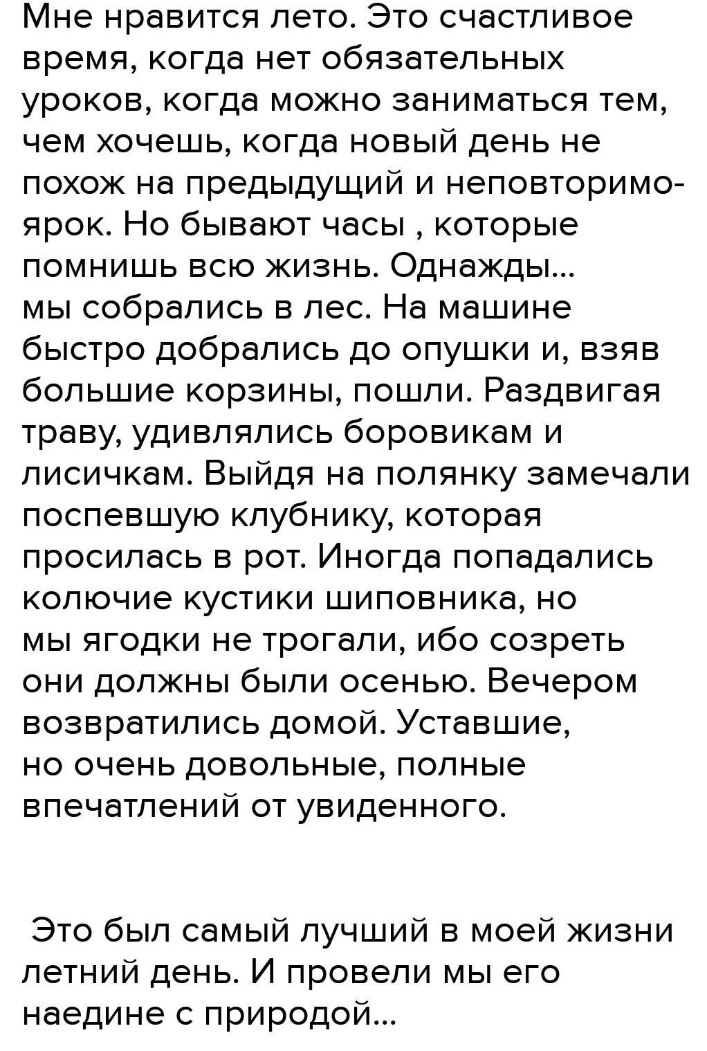 Сегодня уроков мало задали. По математике я получил(а) две пятёрки. Так же сегодня меня отпустила мама погулять с друзьями. А уроки я сделал(а) за пол часа. После моей прогулки мама покормила меня мороженым и в конце дня мы смотрели фильм. Вот так прошёл мой самый лучший день.