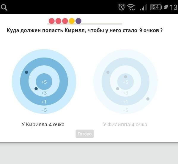 Ответ: Он должен попасть в середину, так как 4+5=9.