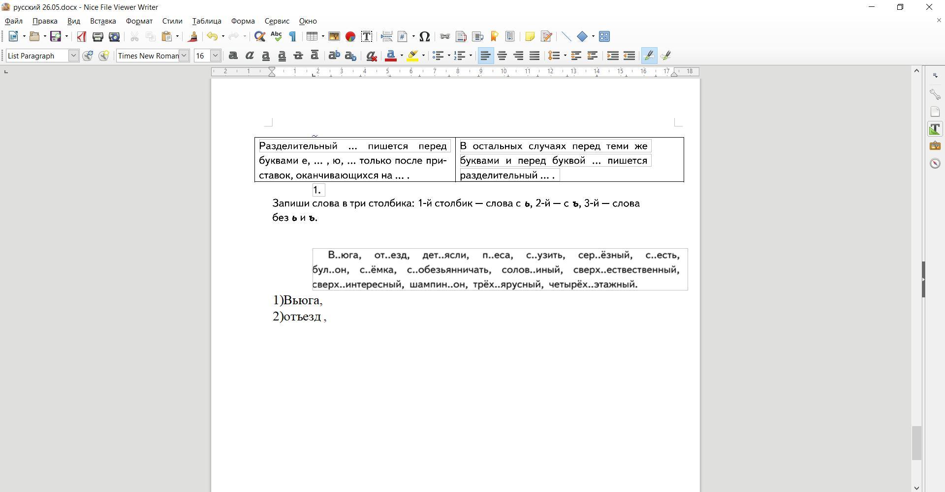 2. отъезд, съесть, съёмка, сверхъестественный, трехъярусный