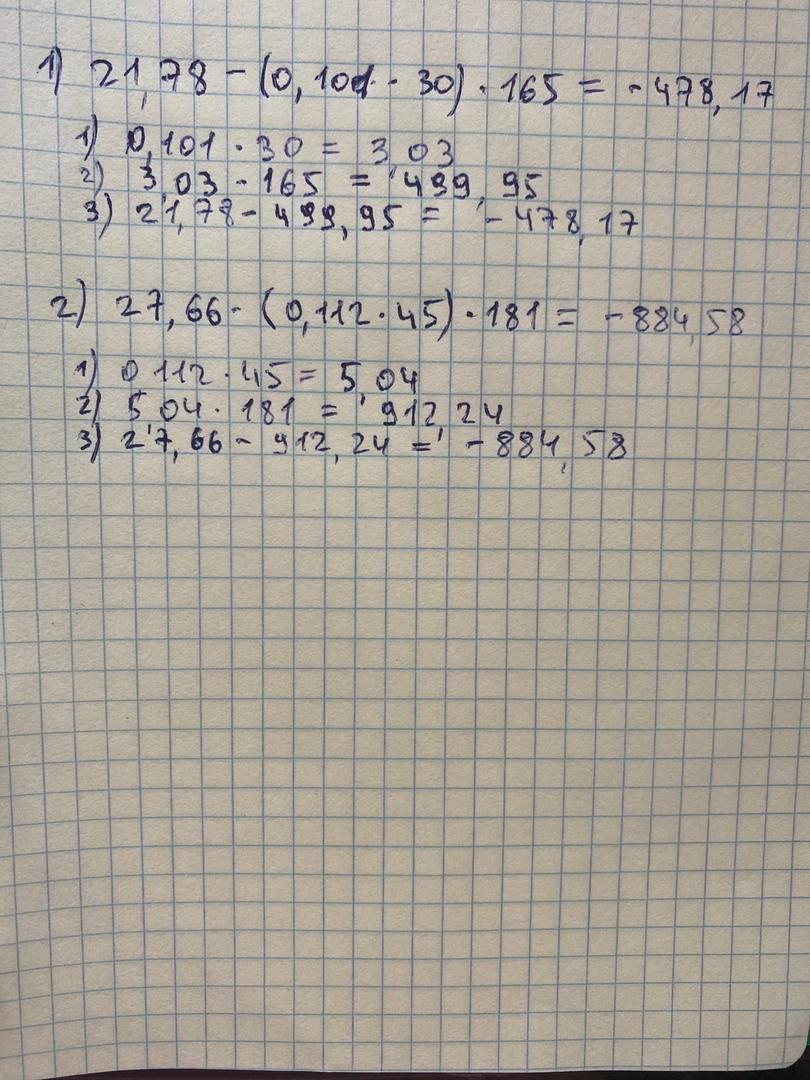 1. 21,78 - (0,101•30)•165= - 478,17