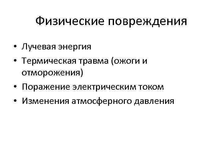 Такі пошкоджуючі чинники, як холод, електрика, радіоактивне випромінювання, полум'я, називаються: