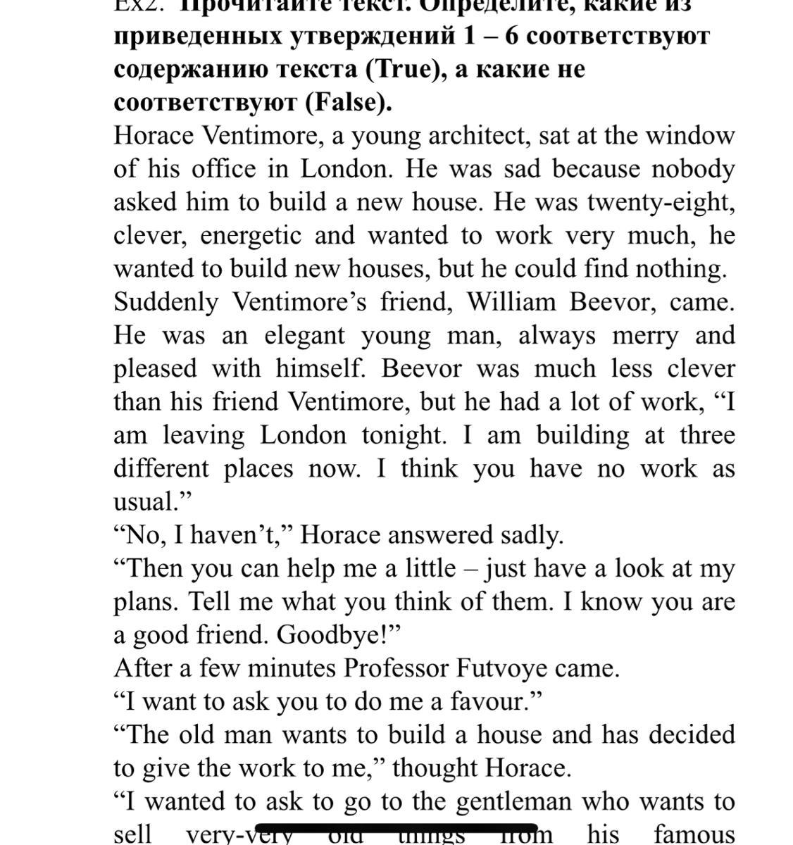 "Then you can help me a little - just have a look at my plans. Tell me what you think of them. I know you are a good friend. Goodbye!" After a few minutes Professor Futvoye came. "I want to ask you to do me a favour. " The old man wants to build a house and has decided to give the work to me," thought Horace. "I wanted to ask to go to the gentleman who wants to sell very-very old things from his famous archaeological collection and try to buy a few things for me," said the Professor. Horace Ventimore was not happy to hear it, but he didn't show what he felt. "Of course. I will go." You are very kind.