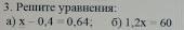 Решите уравнение x-0,4 = 0,64 и 1,2x = 60