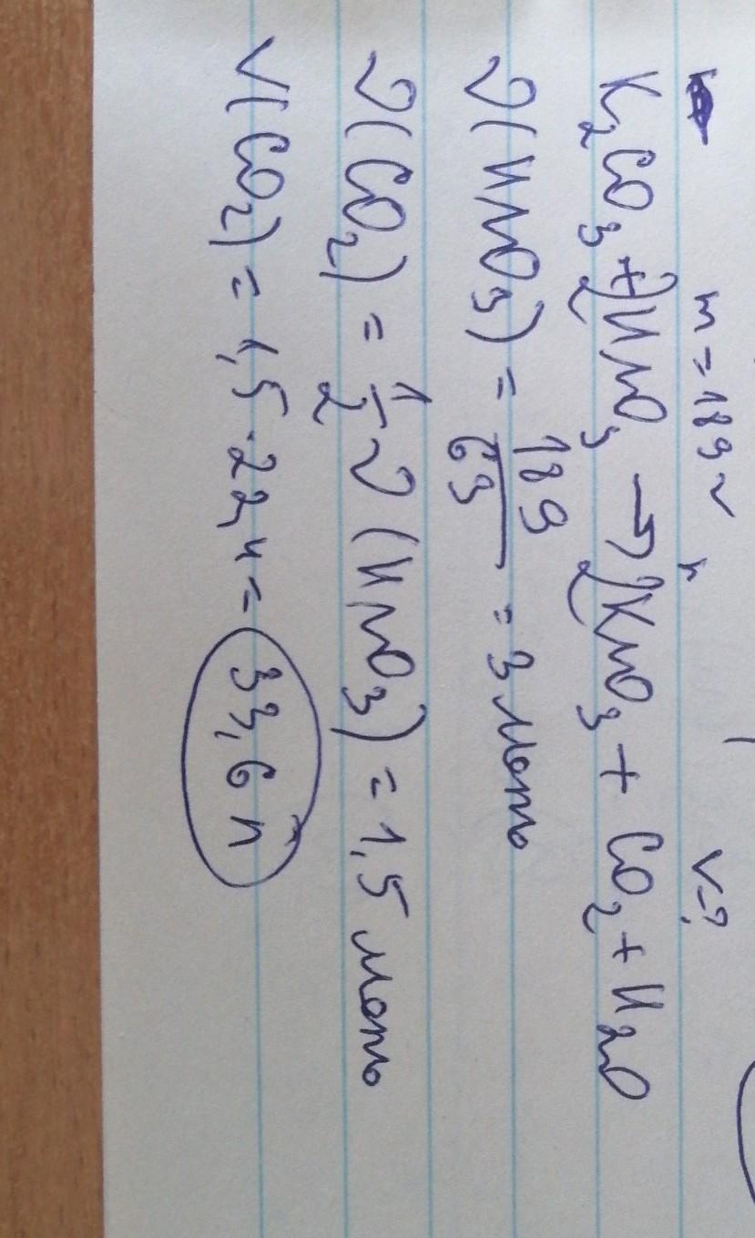 КАКОЙ ОБЪЁМ УГЛЕКИСЛОГО ГАЗА МОЖНО ПОЛУЧИТЬ ПРИ ДОБАВЛЕНИИ К КАРБОНАТУ КАЛИЯ 189 Г АЗОТНОЙ КИЛОТЫ?