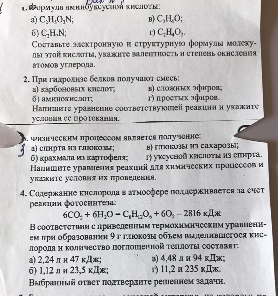 1. а) С2Н5О2N H2N-CH2-COOH Н2- N - CH2 - C = O :