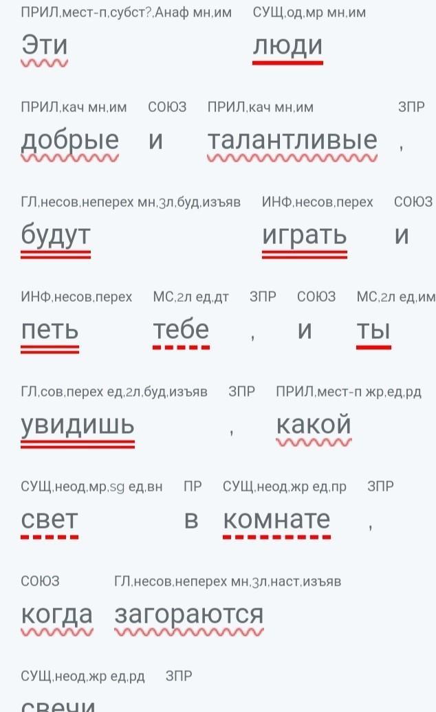 Сделайте синтаксический разбор предложения: Эти люди добрые и талантливые, будут играть и петь тебе, и ты увидишь, какой свет в комнате, когда загораются свечи.