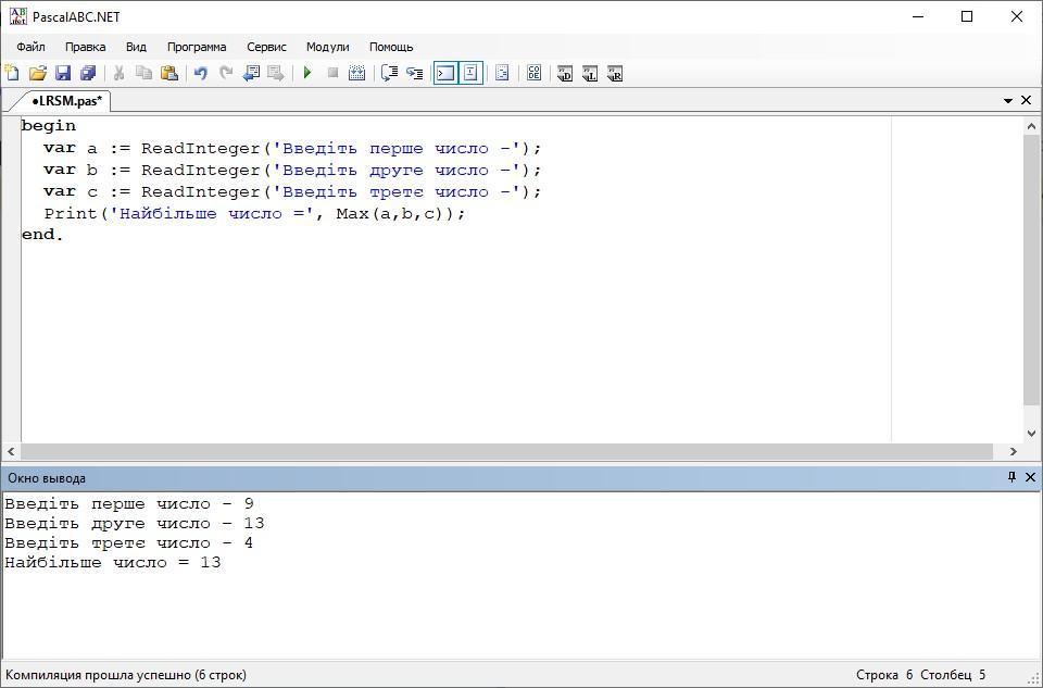 Вводяться три цілих числа. Визначити яке з них найбільше