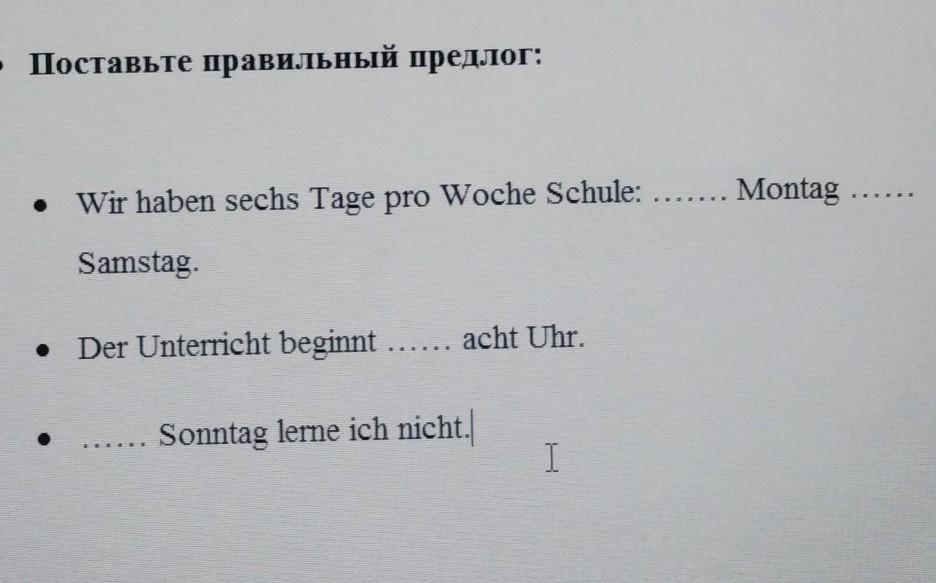 1. Wir haben sechs Tage pro Woche Schule: von Montag bis Samstag.