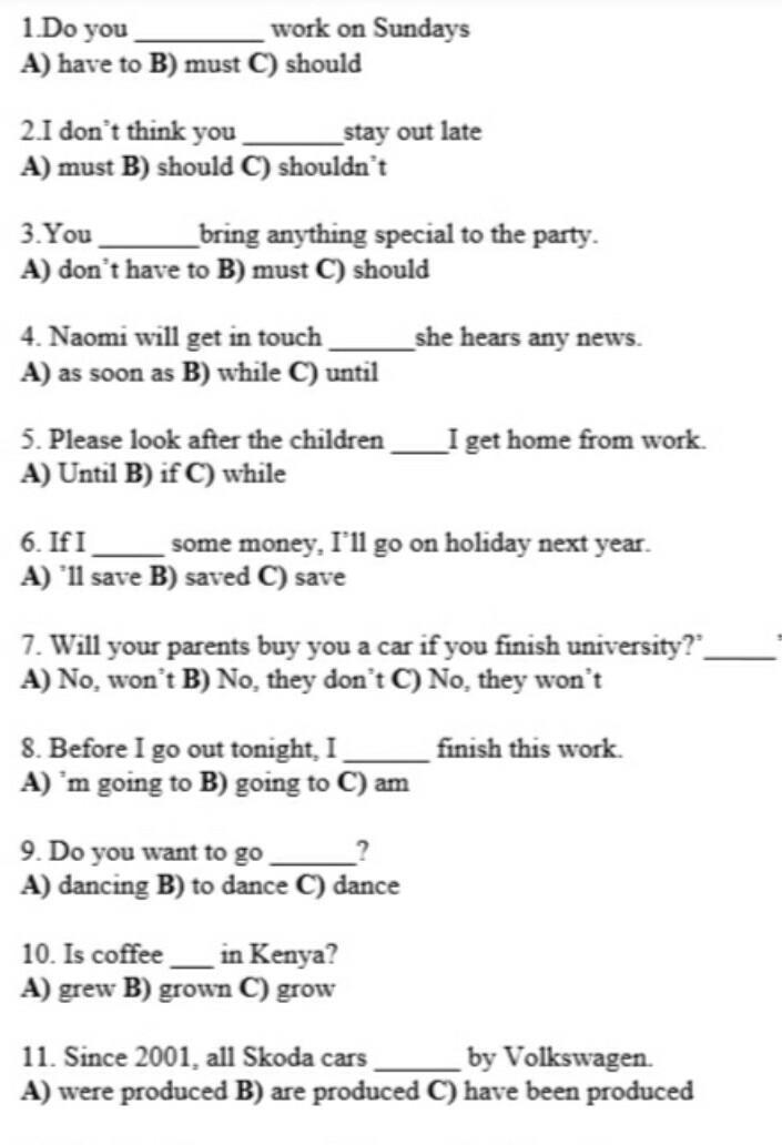 7. Will your parents buy you a car if you finish university? _____ C) No, they won’t
