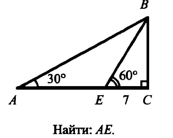 ЕС=ВЕ/2 ( в прямоугольном треугольнике катет, лежащий против угла в 30°, равен половине гипотенузы) ВЕ=2·ЕС=2·7=14