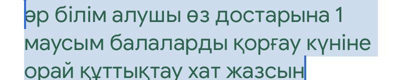 әр білім алушы өз достарына 1 маусым балаларды қорғау күніне орай құттықтау хат жазсын.