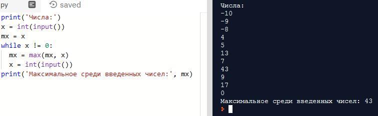 На вход программы поступают целые числа (ввод с клавиатуры осуществляется до тех пор, пока не будет введён ноль). Программа выводит на экран максимальное (наибольшего) из введённых чисел.