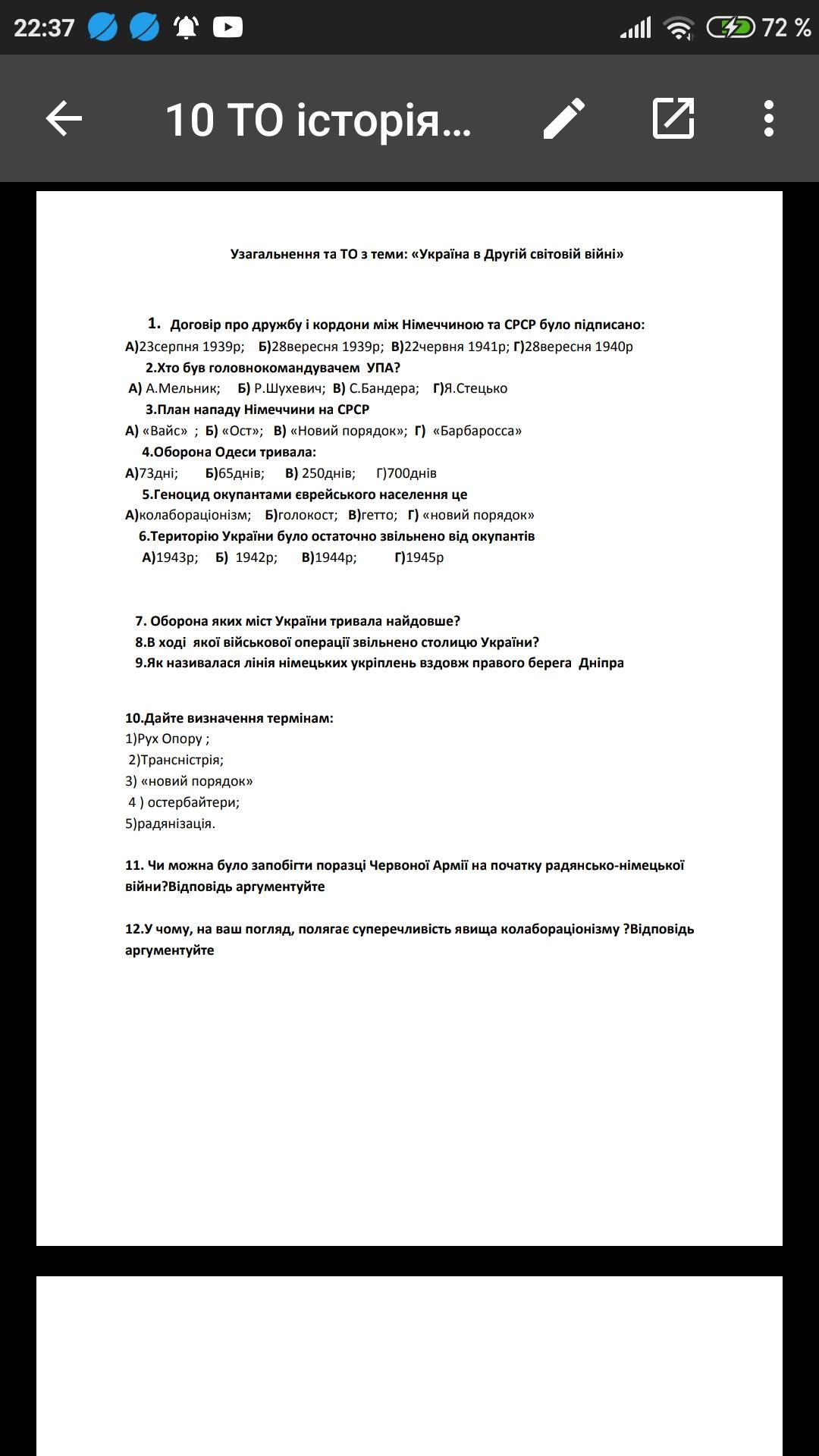 10. Рух Опору-це боротьба з окупантами України, складова частина антинацистського руху Опору в країнах Європи, окупованих під час другої світової війни.
