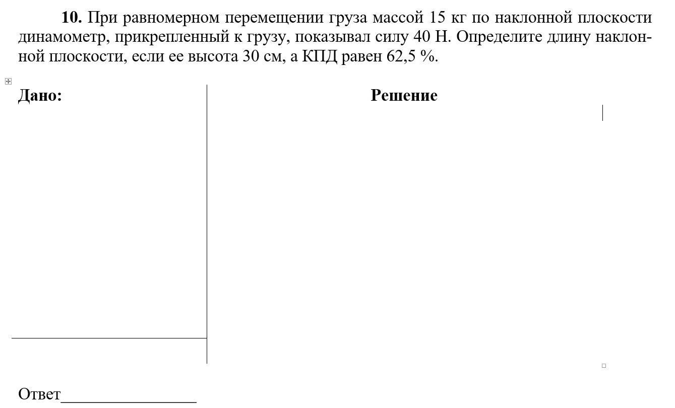 L=m*g*h/F*кпд=15*10*0,3/40*0,625=1,8 м
