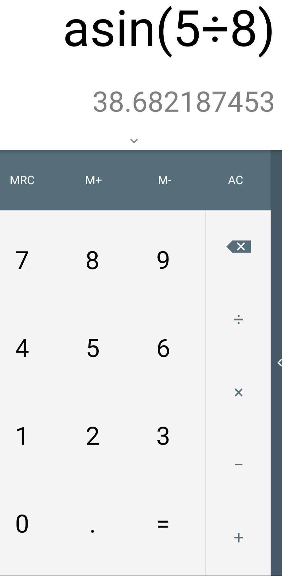 90°-арксинус(5/8)= 2й острый угол