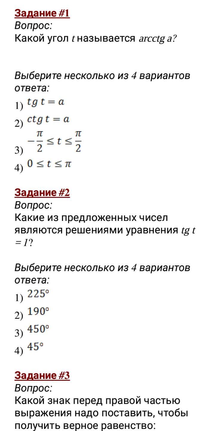 Прикладываю тригонометрические круги, и табличку тангенсов и котангенсов. Это всё пригодилось при решении теста.