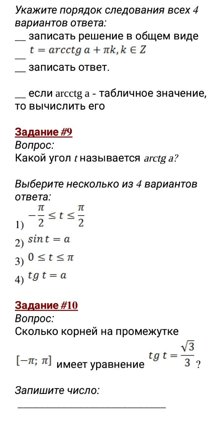 10) 2 (смотри тригонометрический круг для тангенсов)