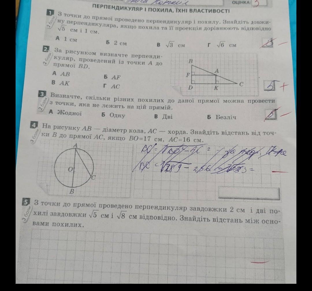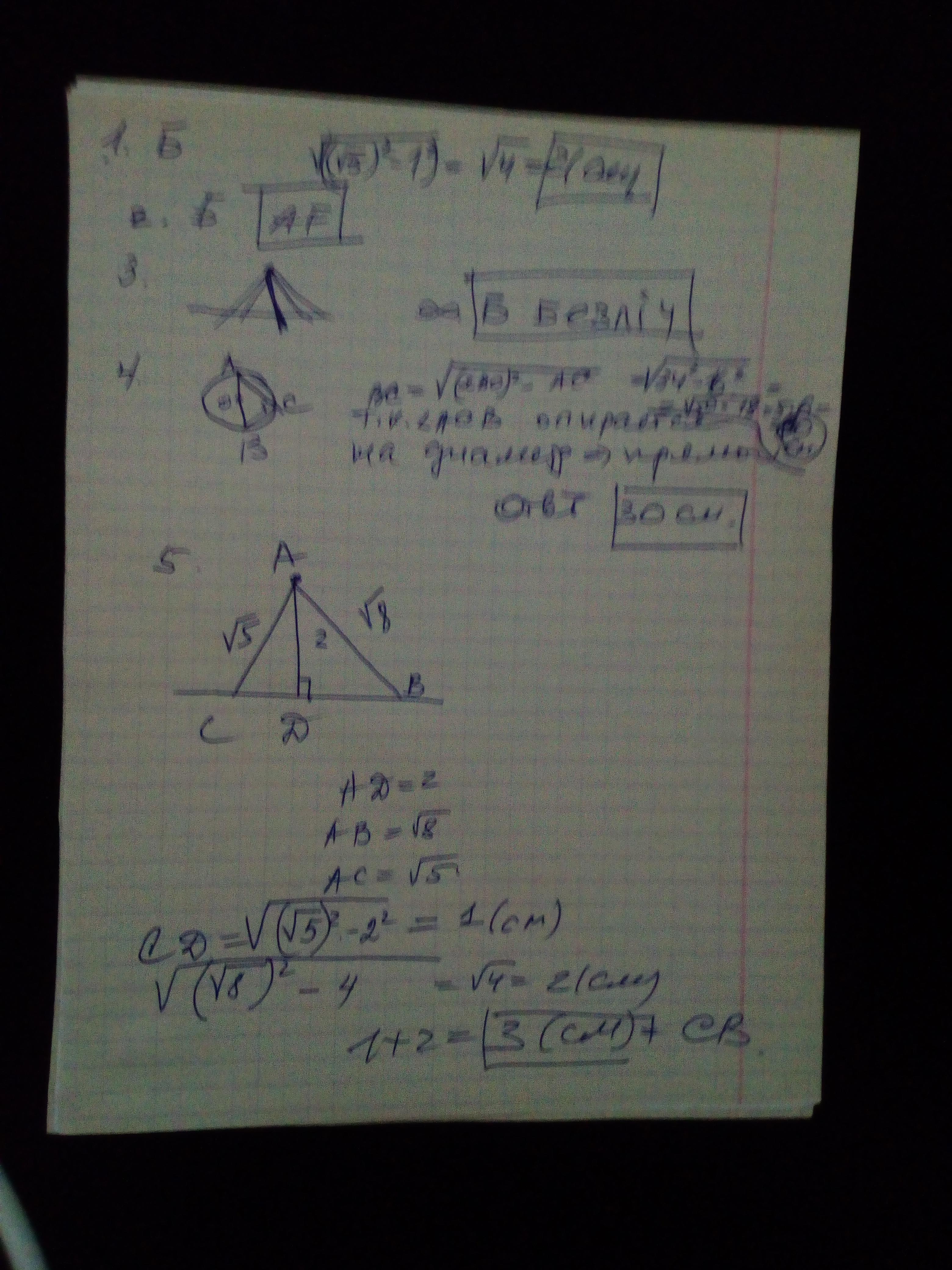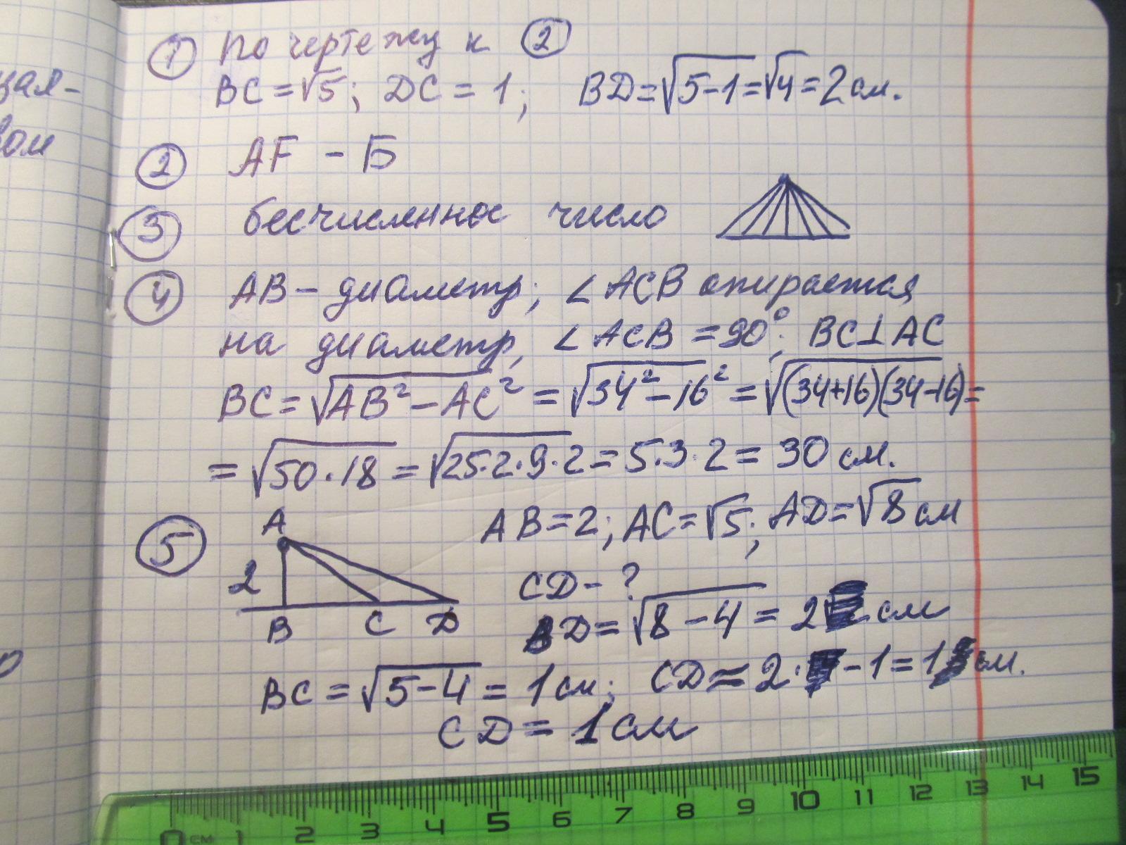 №5 Если АС и АД находятся с разных сторон от перпендикуляра, то ответ: 2+1=3 см.