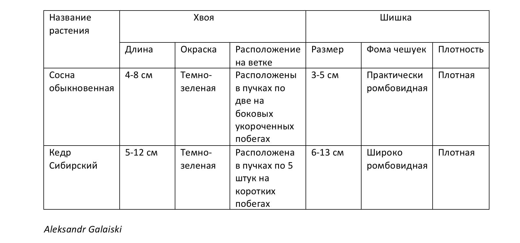 Описание 2 деревьев : Сосны обыкновенной и Кедра сибирского