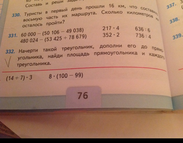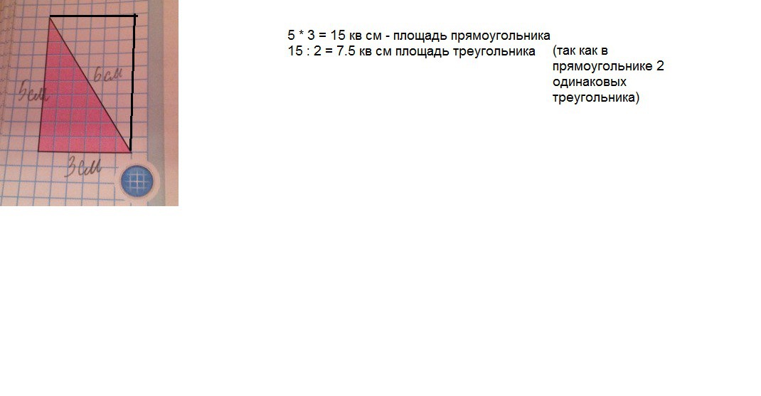 Задание по математике 4 класса: Начерти такой треугольник, дополни его до прямоугольника, найди площадь прямоугольника и каждого треугольника.
