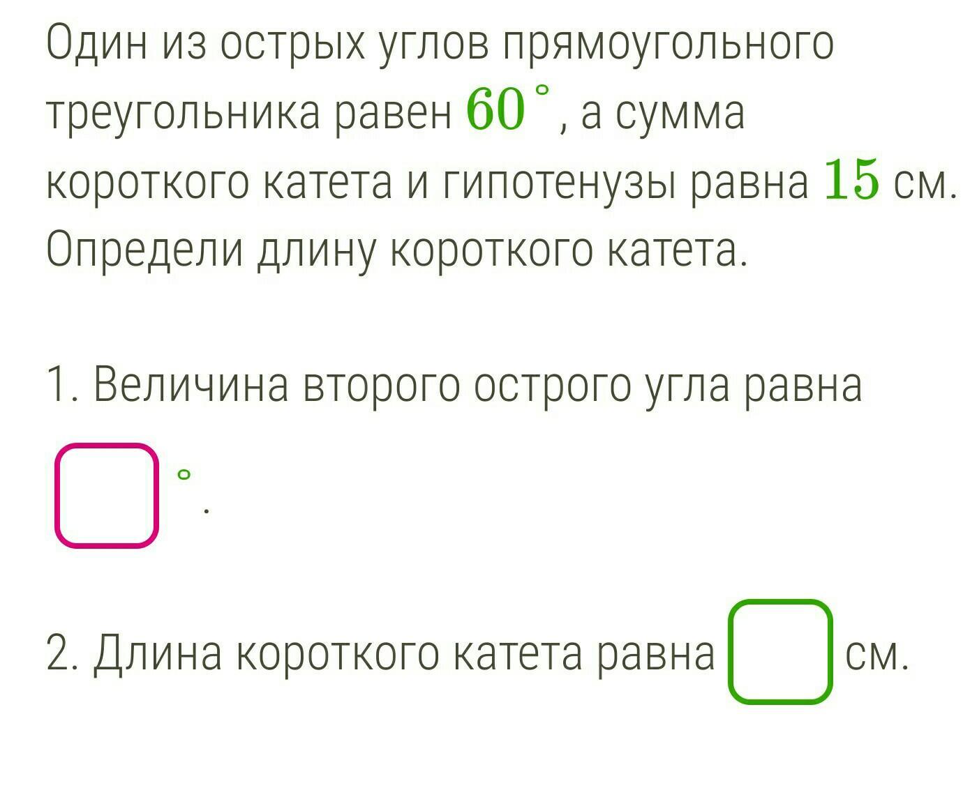 => ∠А = 90˚ - 60˚ = 30˚.