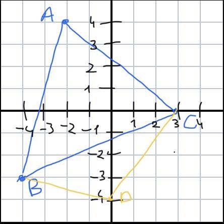 D(0; - 4).Найдите сумма длин диагоналей четырехугольника АВCD.