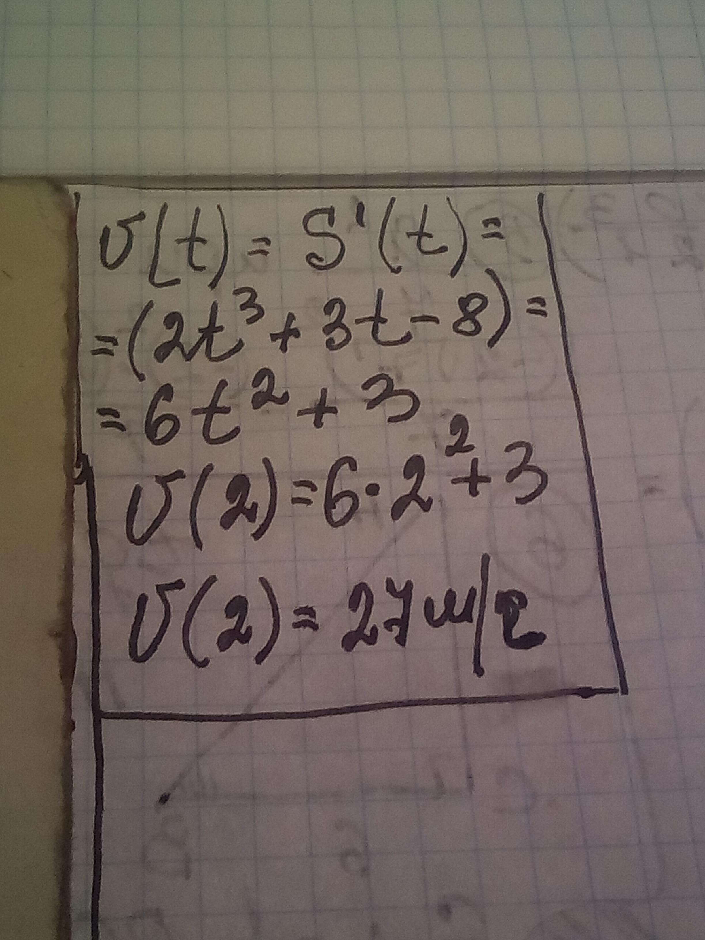 S(t) = 2 +3t - 8 ( я так зрозумів, що 2t3 - це 2