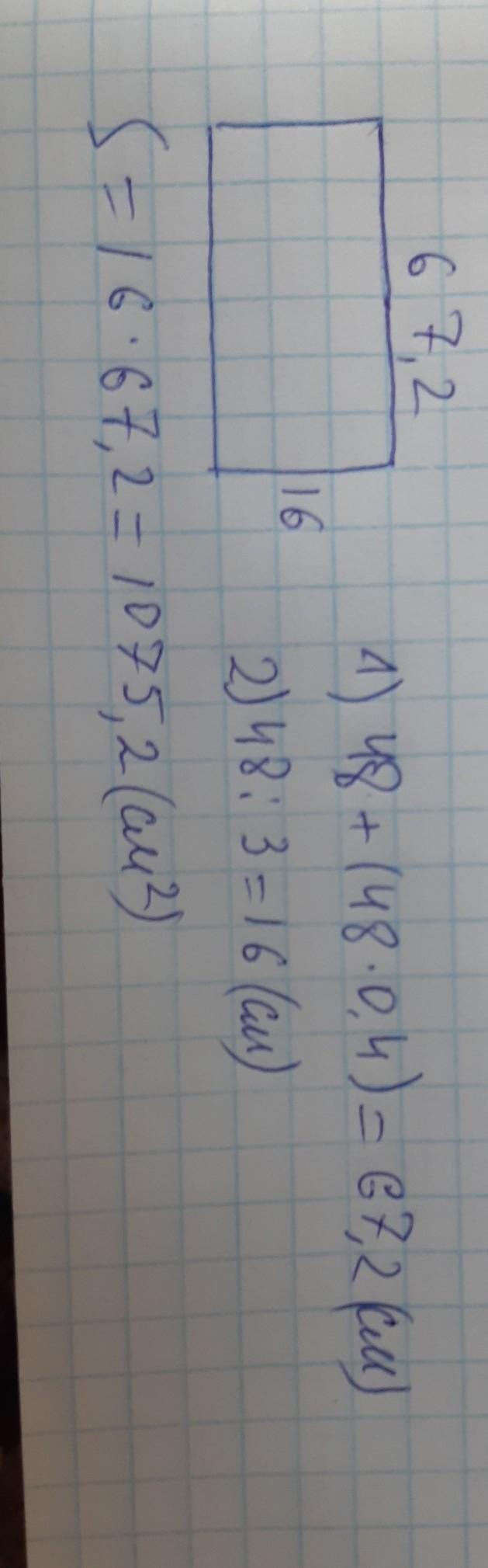 Сторона квадрата 48 см. Одну пару противолежащих сторон квадрата увеличили на 40%
