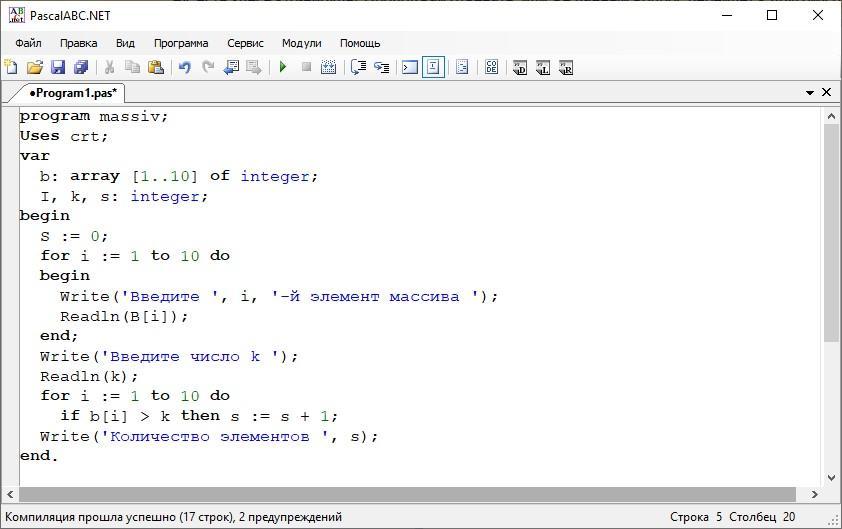 2) Наберите программу на компьютере в среде АВСПаскаль;