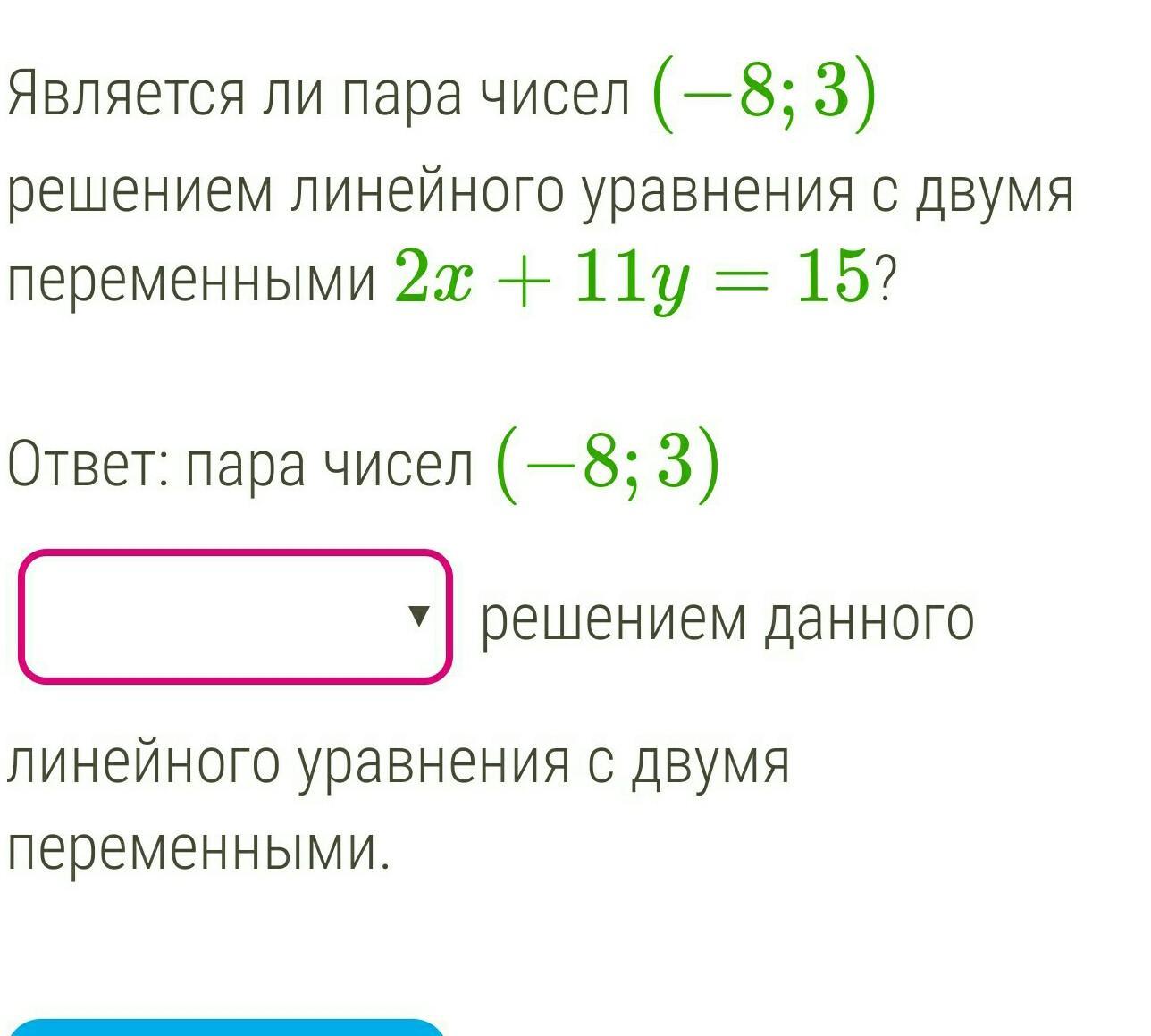 Пара записывается в виде (x; y), равная в данном случае (-8; 3). Подставляем эти значения в равенство: