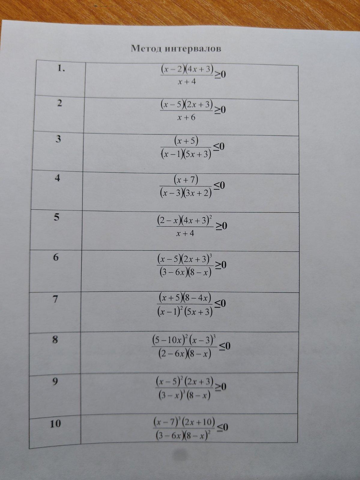 1) x∈( -4, -3÷4)∪(2, +∞)