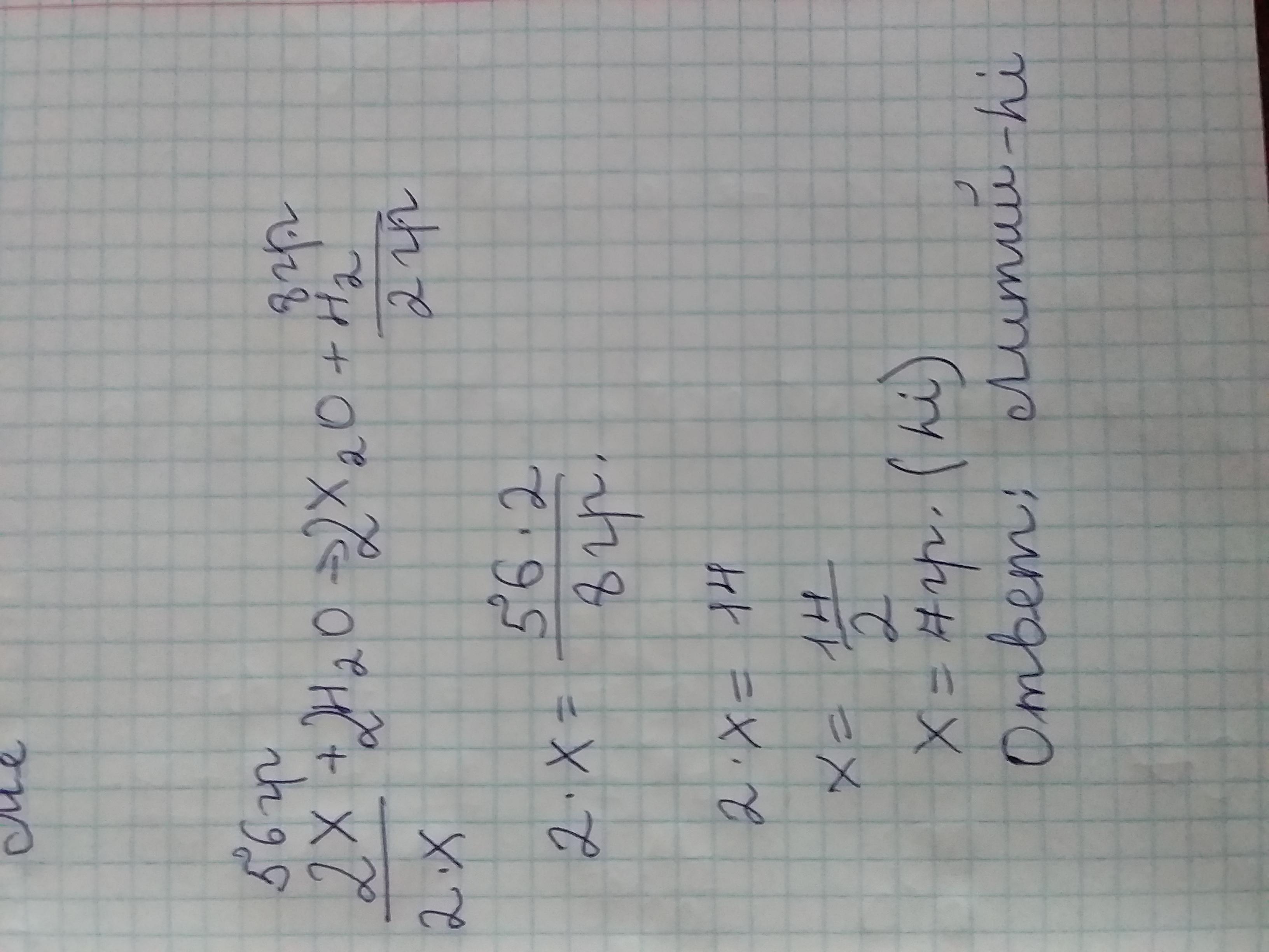 При взаимодействии щелочного металла массой 56 г с водой выделилось 8 г водорода (при н. у). определите что это за металл