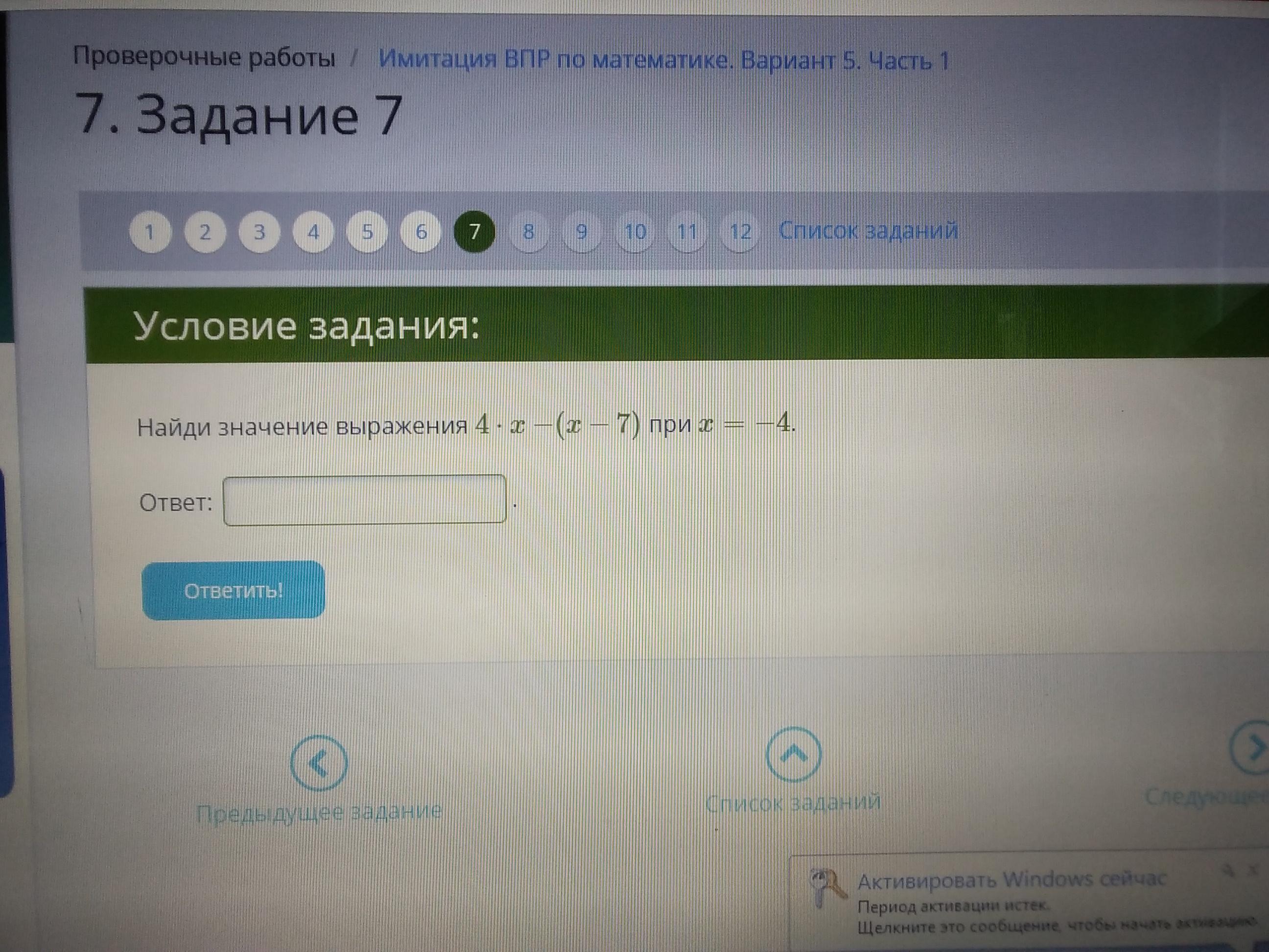 4x-(x-7) при x=-4