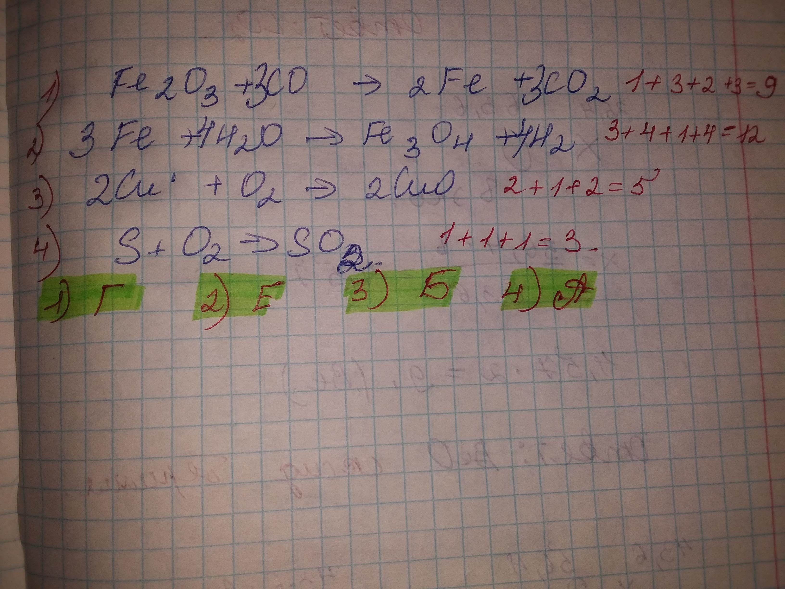 Установіть відповідність між схемою реакції та сумою коефіцієнтів у рівнянні, яке відповідає