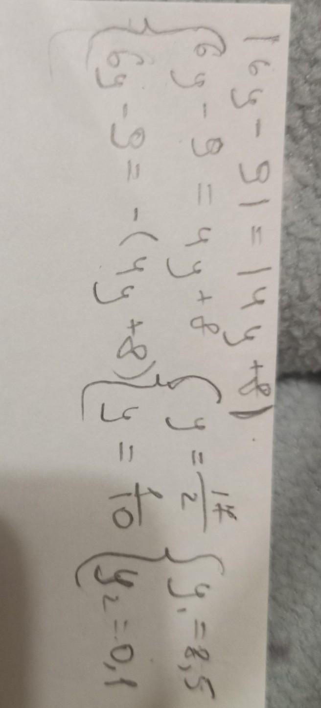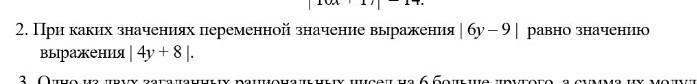 По каких значениях переменной значение выражения |6у-9| равно значению выражения |4у+8|