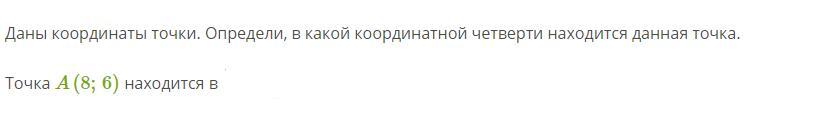 Даны координаты точки. Определи, в какой координатной четверти находится данная точка.