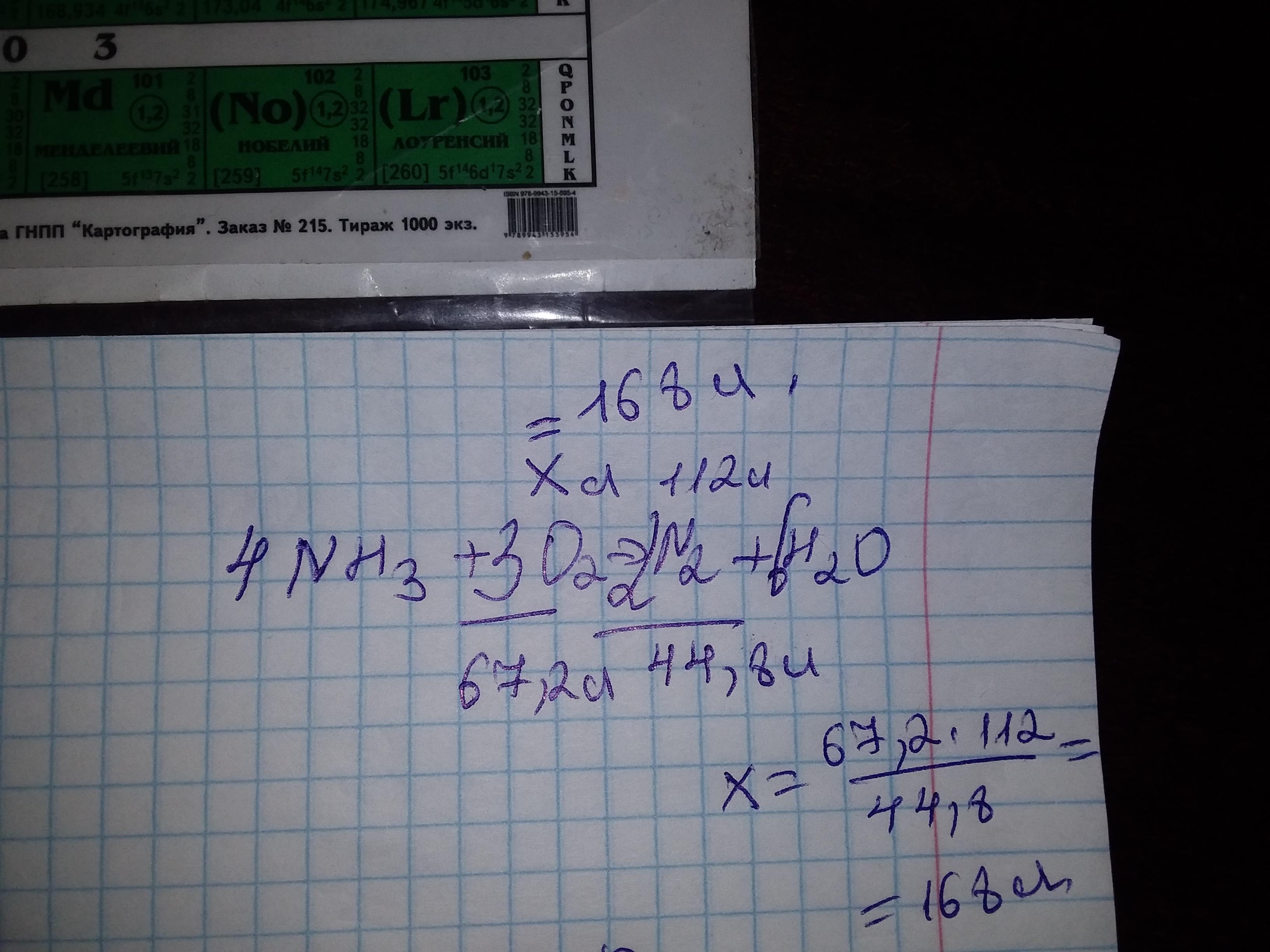 Для реакции: NH3 + O2 → N2 + H2O (расставьте коэффициенты), определите объем