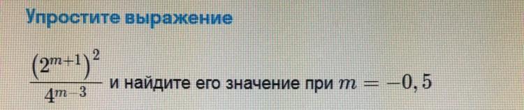 \frac{2^{2m+2} }{(2^2)^{m-3} }  = = \frac{2^{2m+2} }{2^{2m-6} } = 2^{2m+2-2m+6} = 2^8 = 256\\\\ \\\\pri .m = -0.5 === \frac{(2^{0.5})^2 }{4^{-3.5} } = \frac{2}{2^{-7} } = 2^{8} = 256
