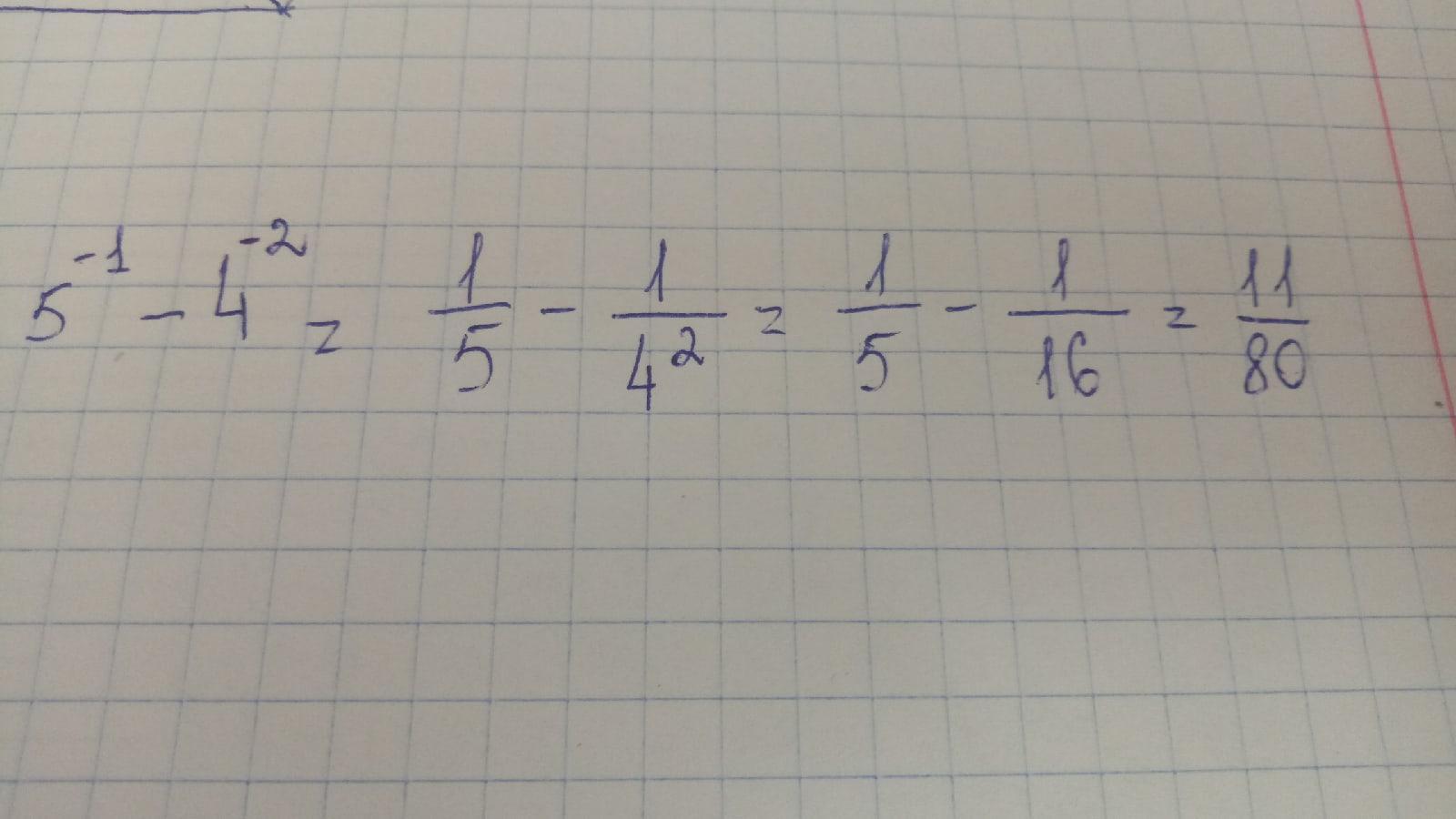 5⁻¹ - 4⁻² = 1/5 - 1/16 = 11/80