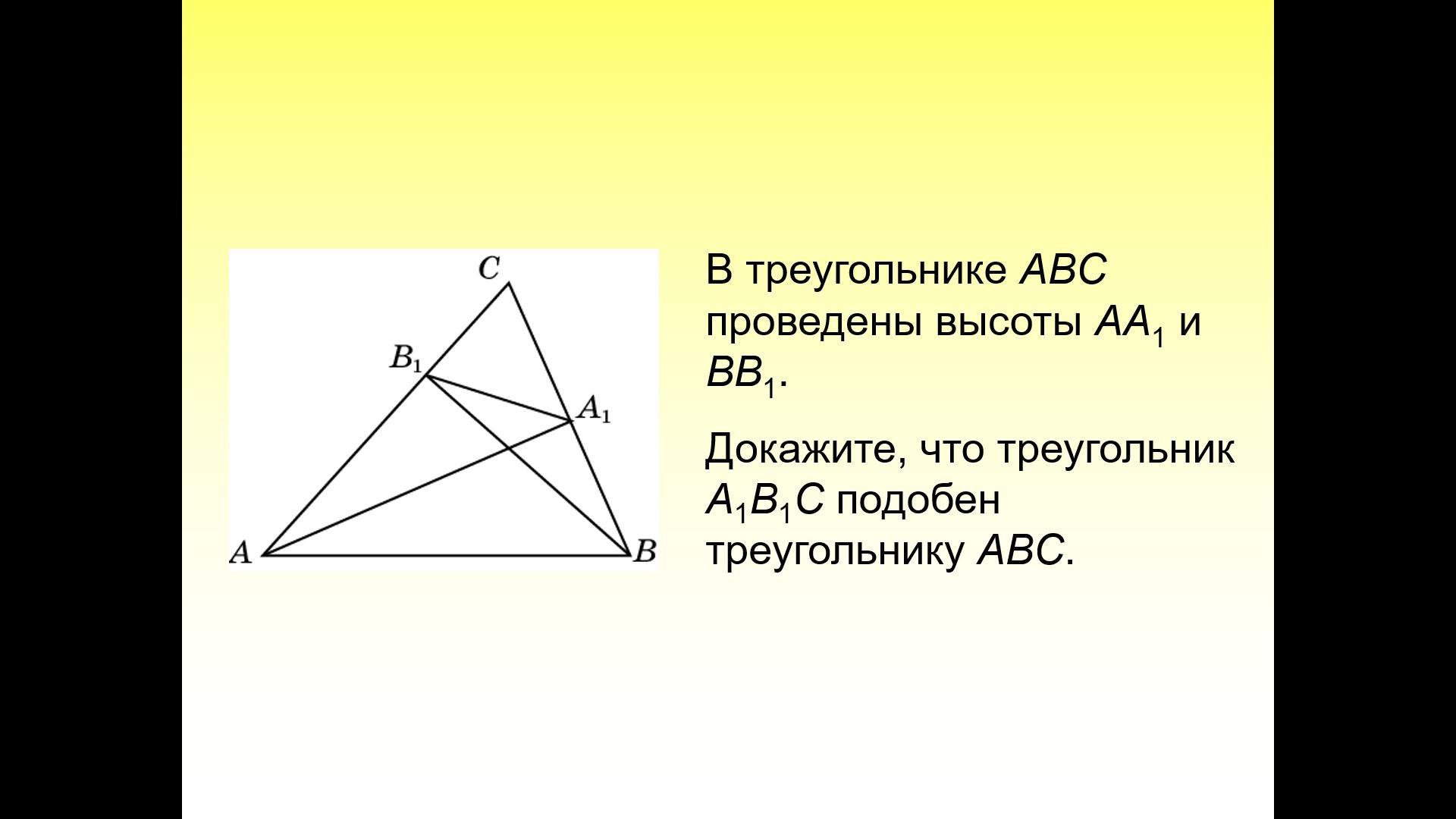 в треугольнике abc проведены высоты AA1 и BB1. докажите что треугольник A1B1C подобен треугольнику ABC
