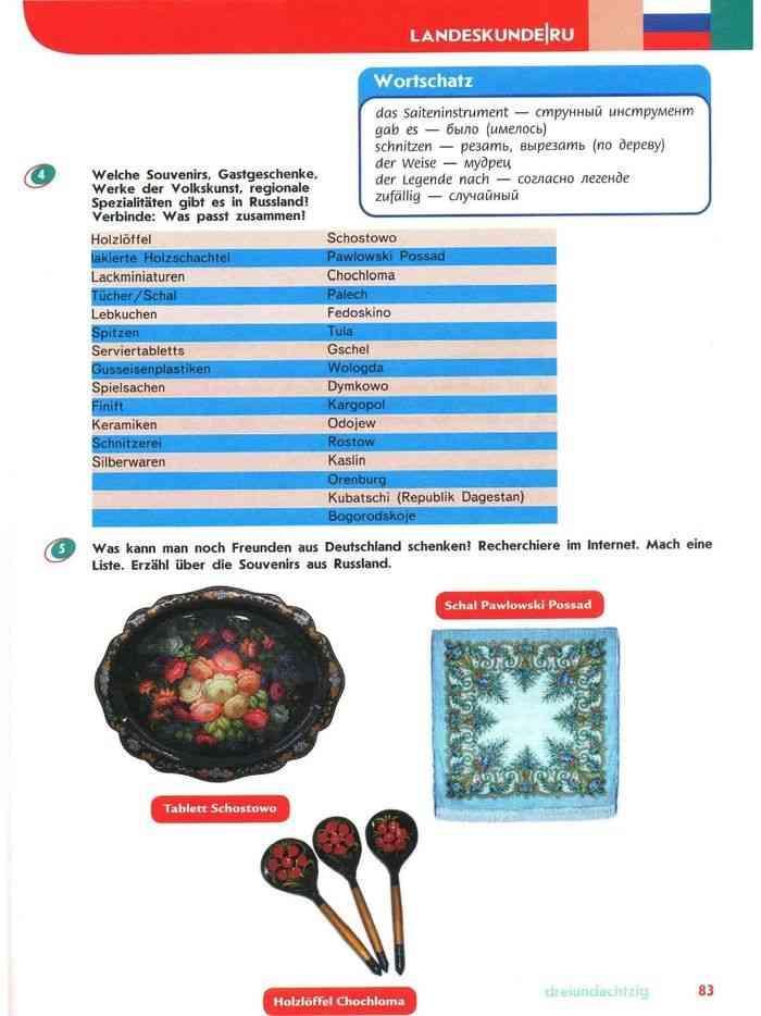 Сделайте задание номер 4(Напишите, какие сувениры, предметы народного искусства характерны для России. Найдите соответствия.)
