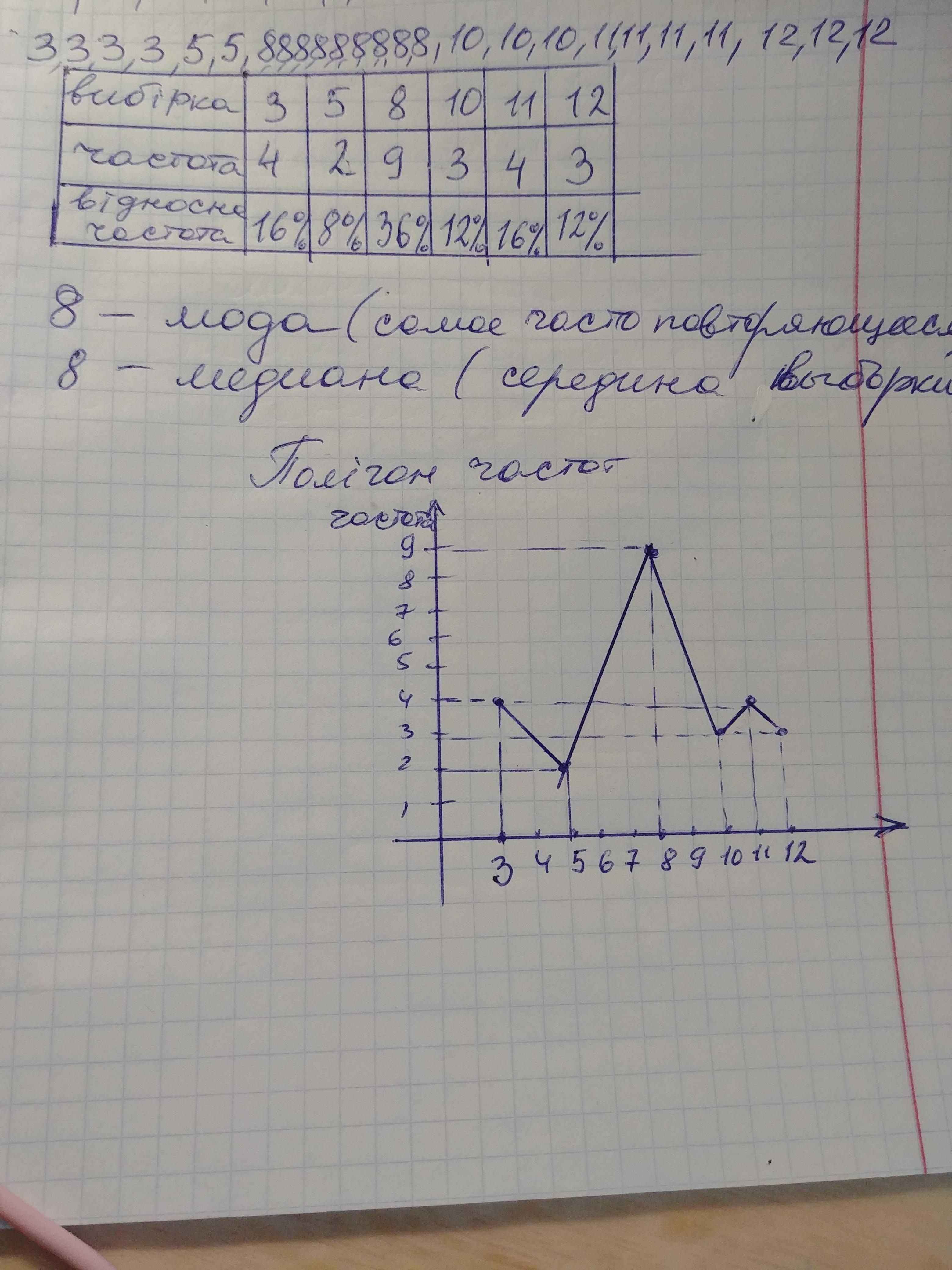 — 9 разiв, число 10 — 3 рази, число 11 — 4 рази, число 12 — 3 рази. Складiть