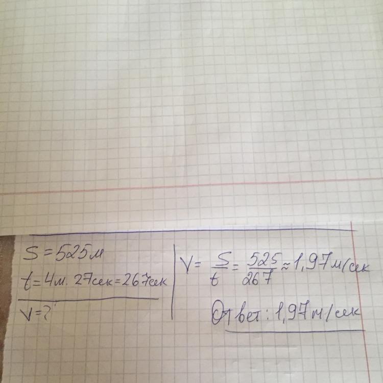 В безветренную погоду парашютист с высоты 525 м равномерно опускался 4 мин 27 с.