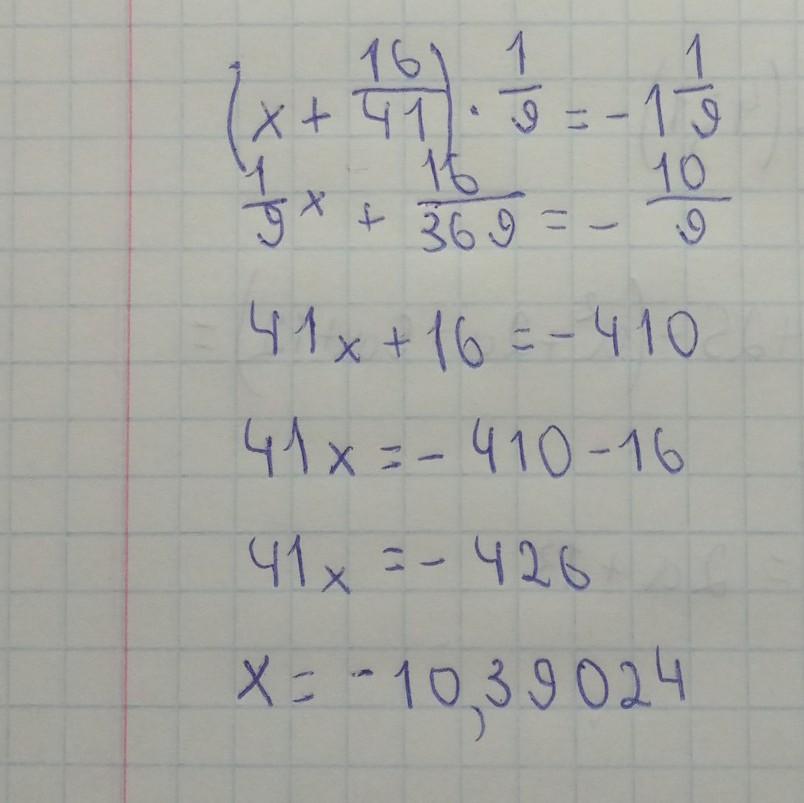 Здравствуйте, я решила это задание, ответ -11 целых шестнадцать сорокпервых.