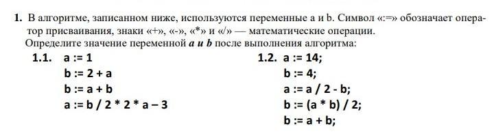 4) И последнее действие, находим НОВОЕ a. Значит, a:=4/2 * 2 * 1 - 3 (выполняем действия, получается a:=1).