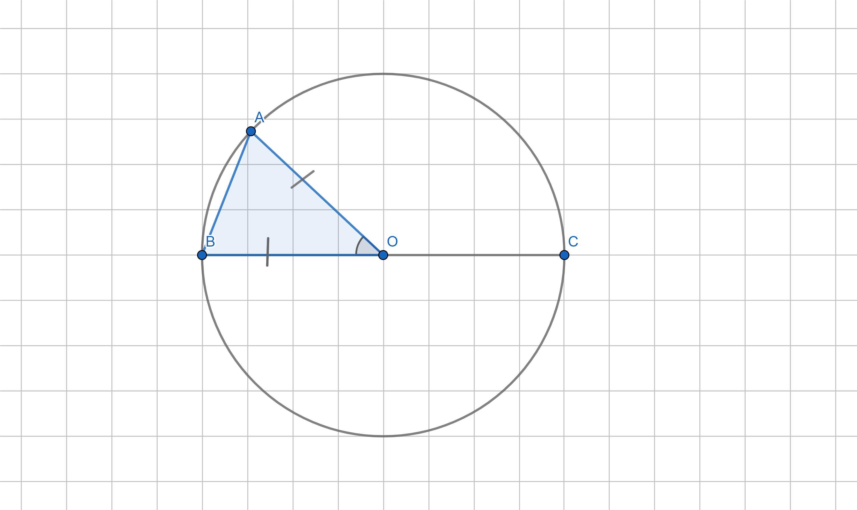 Точки A , B , C лежат на окружности с центром в точке O. Чему равен ⦟ABC, если известно, что BC является диаметром данной окружности, а ⦟AOB = 66°.
