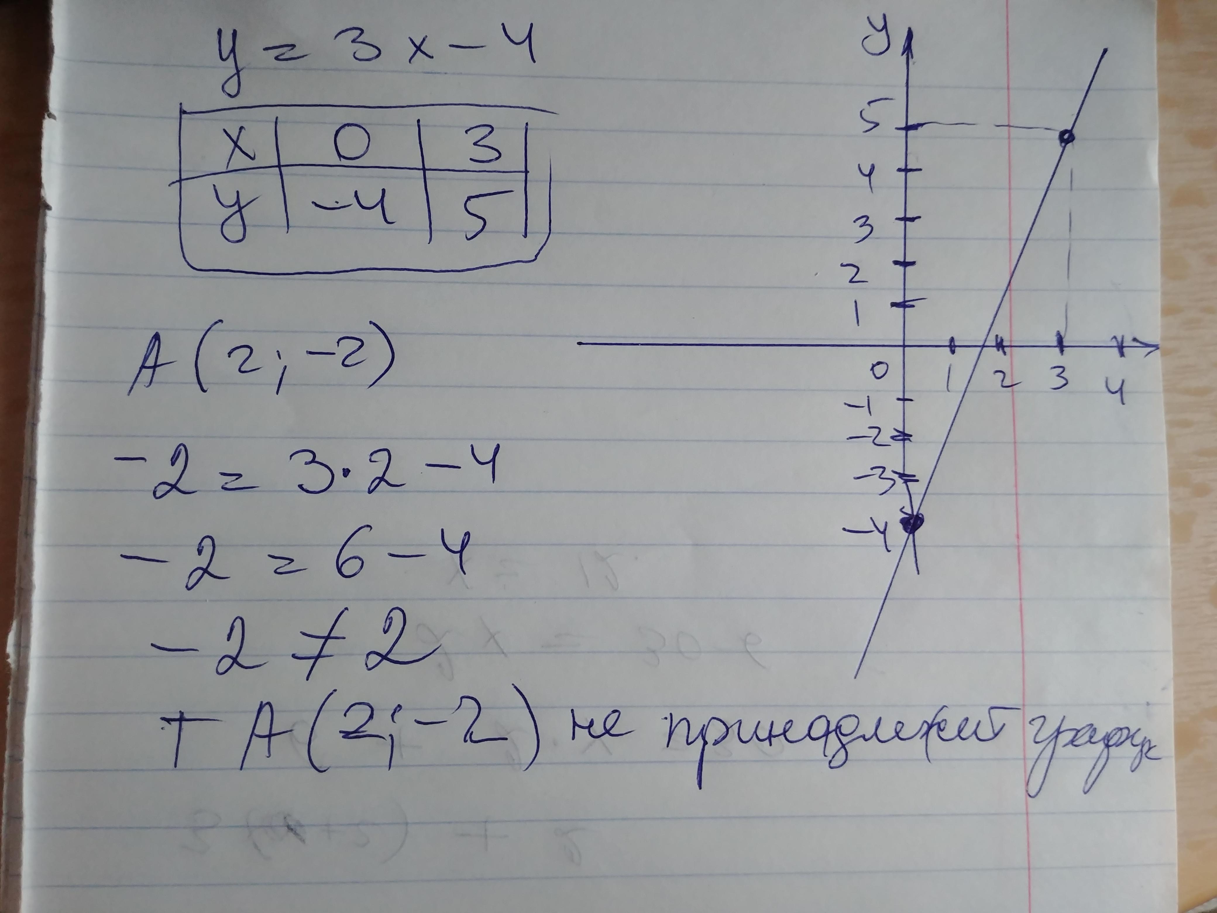 Постройте график функции у = 3х – 4. Проверить проходит ли график функции через точку А( 2; -2 ).
