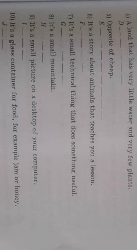 4)desert 5)expensive 6) fauna (maybe) 7) I DON'T KNOW 8) hill 9)ikon 10)jar
